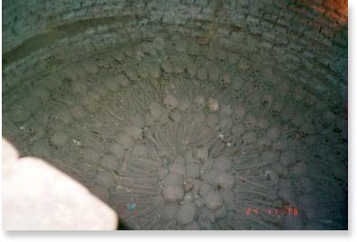 A ritual burial formation of old skulls and bones